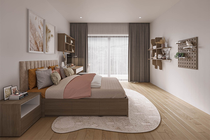 Khung giường được làm từ gỗ chất lượng cao, được chế tạo bởi những nghệ nhân thủ công tài ba. Bề mặt gỗ được hoàn thiện bằng lớp sơn phủ mịn màng, giúp bảo vệ và tôn lên vẻ đẹp tự nhiên của gỗ. Những đường nét cắt chỉ tỉ mỉ tạo nên một bức tranh hài hòa, đồng thời thể hiện sự cân đối trong từng chi tiết.